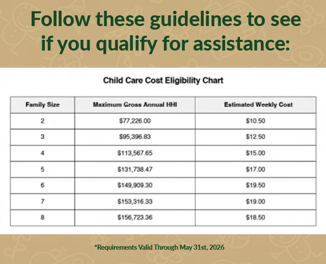 El Programa de Asistencia para el Cuidado Infantil de las Familias de Woodstock ayuda a las familias a determinar su elegibilidad para recibir apoyo financiero mediante la evaluación de sus ingresos y necesidades de cuidado infantil. Ofrecemos orientación sobre el proceso de solicitud y la documentación necesaria para garantizar una experiencia sencilla. Además de la asistencia para el cuidado infantil, podemos ayudar a las familias a encontrar opciones de campamentos de verano y ayuda financiera disponible. Con las plazas agotándose rápidamente, ¡ahora es el momento de actuar! ¡Llámenos hoy o complete el formulario a continuación!